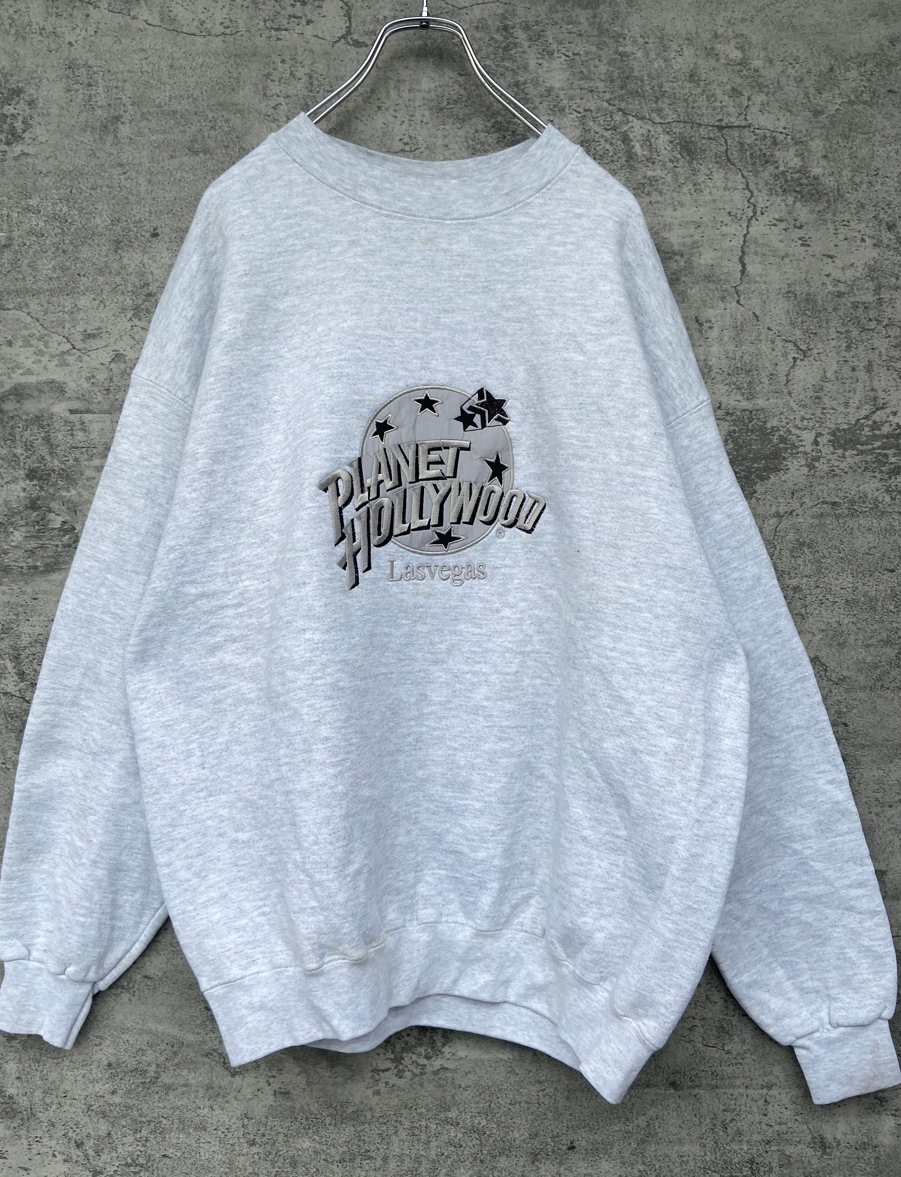 お色は霜降り白(ホワイト)で刺繍が銀の可愛いデザインです。90sスウェットでオーバーサイズ で着用できます。 ハードロックカフェなどのUSA古着が好きな方におすすめのお品物です